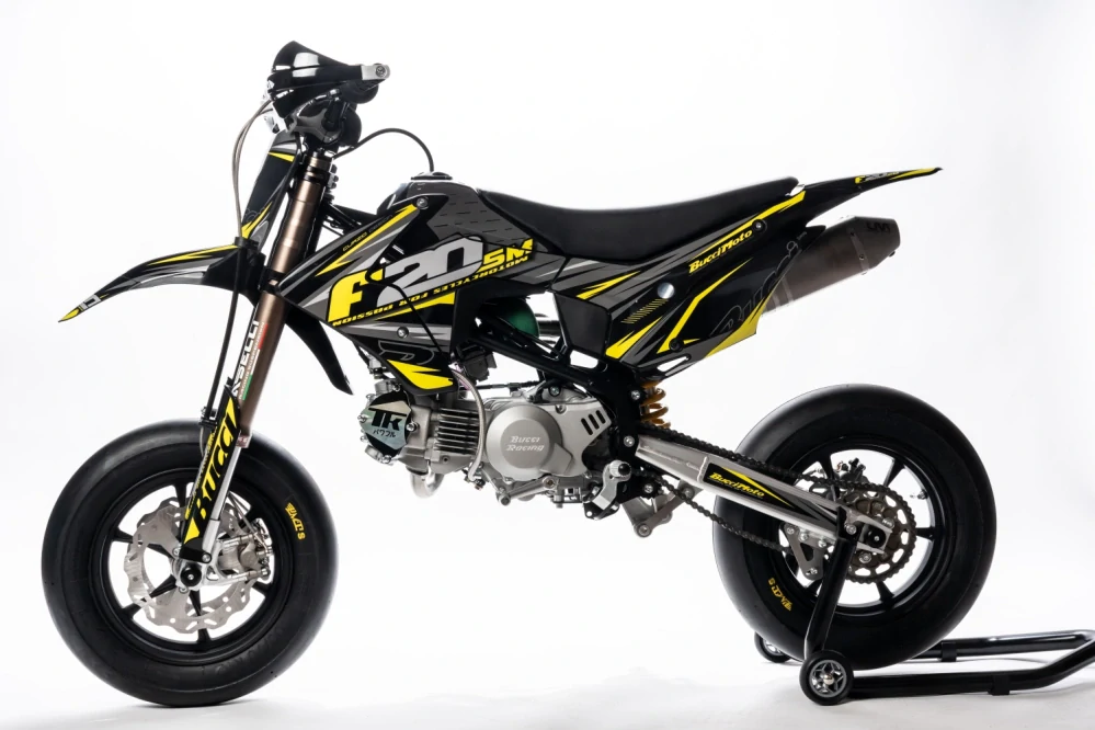 Pro rok 2025 BucciMoto představilo nový model F20SM, který má oproti staršímu modelu nový zesílený rám motorky, který je jěště pevnější. Nově je také přepákování zadního tlumiče z hliníkové slitiny 7020 v kombinaci se zadním tlumičem Maselli a předními vidlicemi UPSD Maselli vylepší již tak vyborné jízdní vlastnosti předešlého modelu. Hliníkové ráfky s cnc středy jsou nově obuty do pneumatik PMT slick. Srdcem motorky je Yx160 Tokawa 2V s osvědčeným karburátorem Keihin28mm a DT filtrem. Pitbike zkrotíte díky dvojitým předním brzdám FORMULA s dvojpístkovými třmeny( na každé straně jeden brzdič), zadní brzda je též osazena brzdou FORMULA. Sportovní výfuk LM s karbonovou koncovkou.