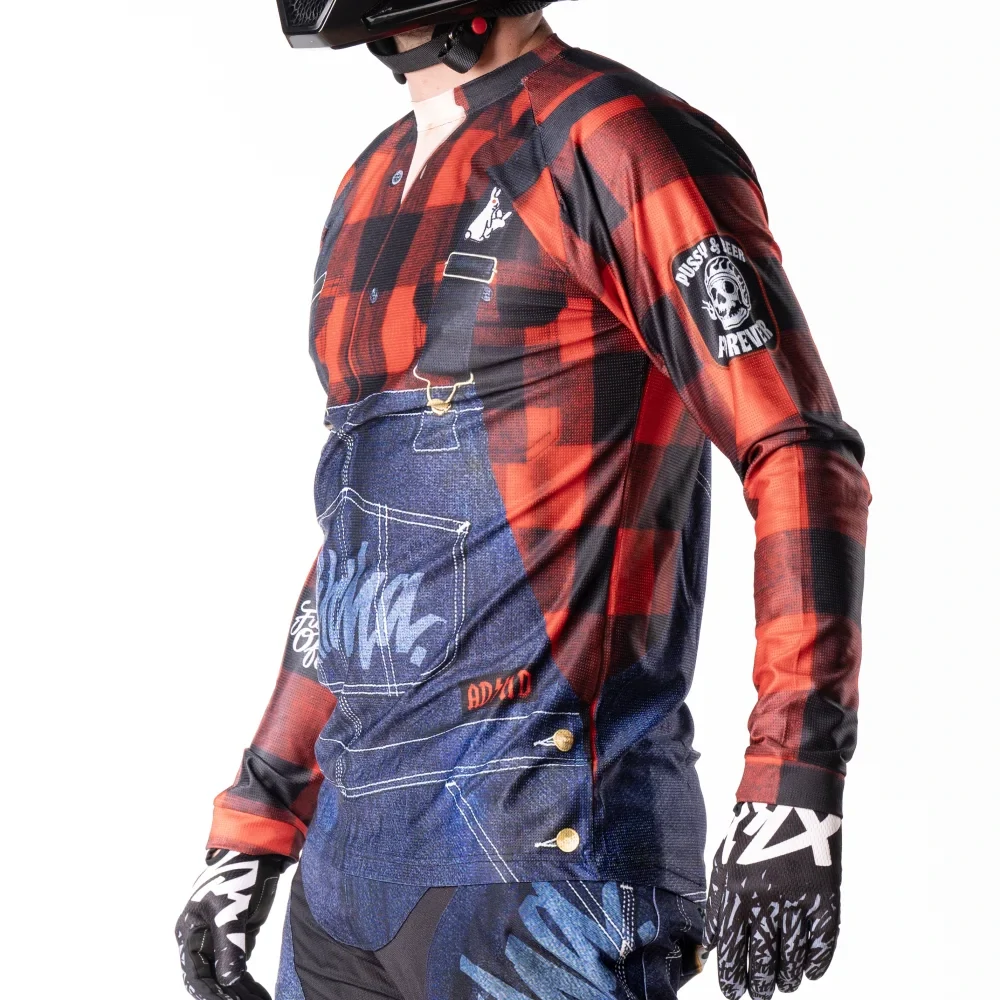 PITCHA REDNECK – Motokrosovej set pro pravý vidláky s pořádnejma koulema! Zapomeň na karbonový skafandry a sterilní liščí look, protože "redneck" je poctivej motokrosovej úbor v designu džínovejch lacláčů a červený flanelky. Vychytaný střih, odolný materiály a svoboda pohybu, ať už zrovna skáčeš přes pařez nebo fotrův traktor! Hlavně se neboj bejt buran